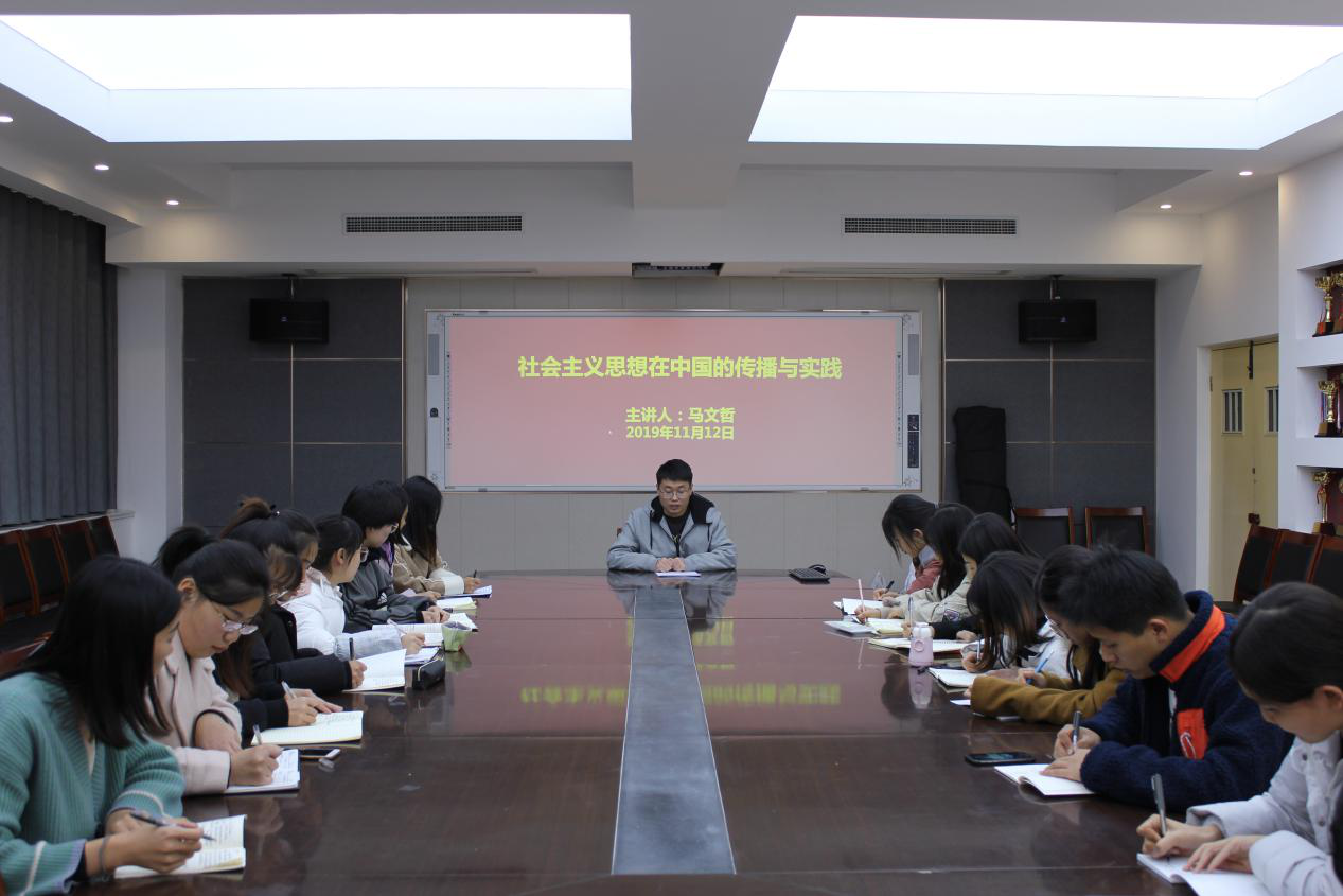 11月12日,mk体育辅导员马文哲在生物楼会议室以《社会主义思想在中国的传播与实践》为题讲党课。学习过程中,马文哲从“中国共产党的历史是马克思主义在中国的发展史”、“中国共产党坚持和发展马克思主义的成功探索”、“坚持和发展马克思主义是中国共产党的永恒主题”三个方面,向同学们讲述了社会主义思想在中国的发展历程。“重温历史经典、感受时代魅力,弘扬传统文化、躬身社会实践,一个时代有一个时代的奋斗目标,一个时代有一个时代的青春理想,各位同学,应当努力追寻自己的榜样,敢于担当敢于作为,争做‘四有’青年。”