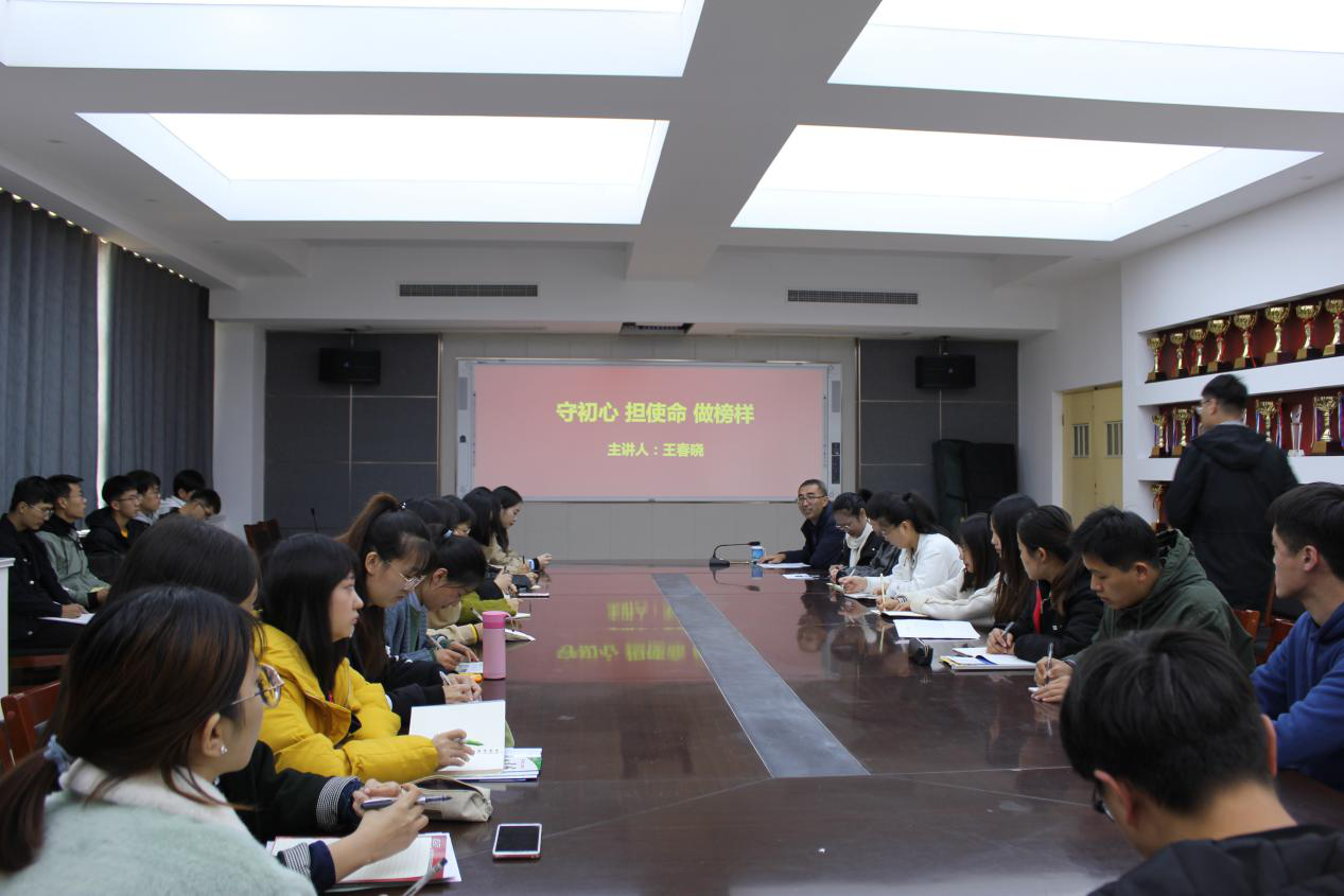 11月9日,公司党委副书记、学工办主任王春晓为第二十五期入党积极分子与发展对象讲“不忘初心、牢记使命”主题教育专题党课。党课中,王春晓从《雷锋日记》里的一段名言“如果你是一缕阳光,你是否照亮了一片黑暗……”引出雷锋精神并阐述了雷锋精神的时代内涵,指出雷锋是丰富鲜活的榜样,你我都可以成为雷锋,以“助人为乐、服务人民”为宗旨的雷锋精神永远不会过时,希望全体员工党员与入党积极分子都要学习雷锋精神,争做榜样,为人民服务。他分享了自己亲身经历的榜样故事,并鼓励同学们分享自己的榜样故事。通过这些榜样故事,启发引导员工们认识到,作为一名合格党员必须发挥好先锋模范作用,坚定理想信念,提升自己,带动他人,用实际行动为同学服务,为公司、公司、社会做贡献。