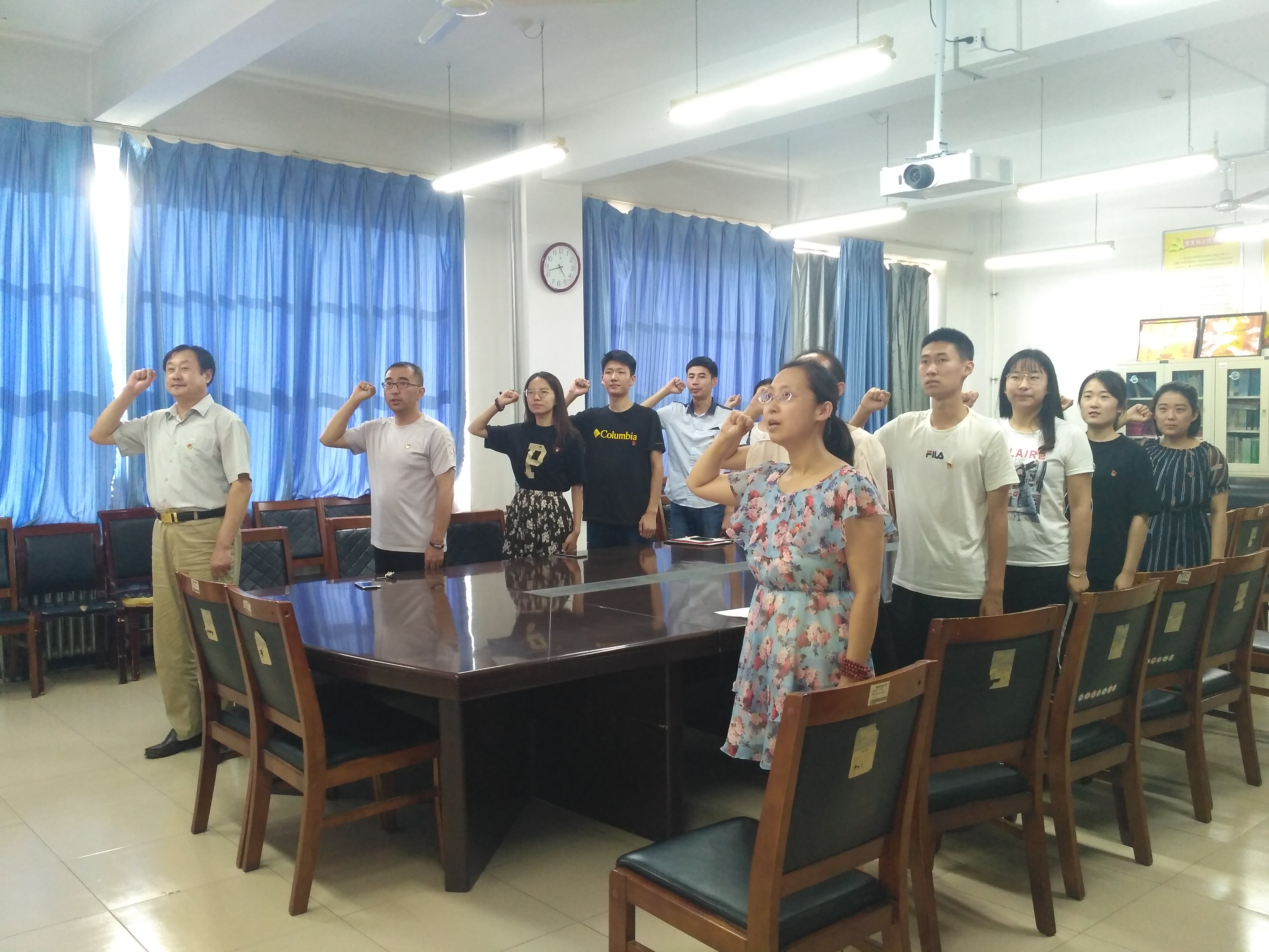 会议在庄严的《国际歌》中拉开序幕。首先,辅导员宋颖芳带领全体党员面向党旗,握紧拳头,庄严宣誓,表达永远忠于中国共产党的决心。