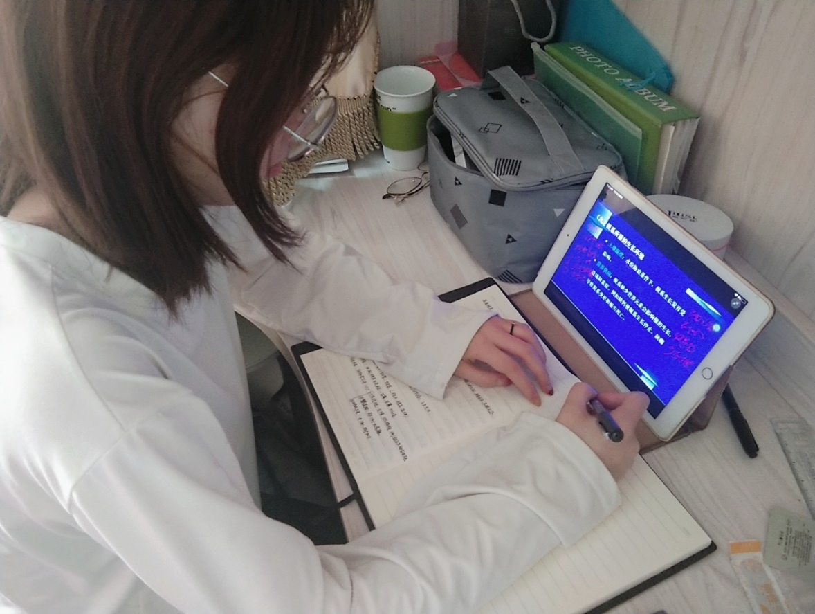 通过员工发回来的网络上课照片及笔记,可以看出员工对学习态度很端正(图6),上课非常认真,仔细记录笔记(图7)等,与正常课堂教学没有差异。