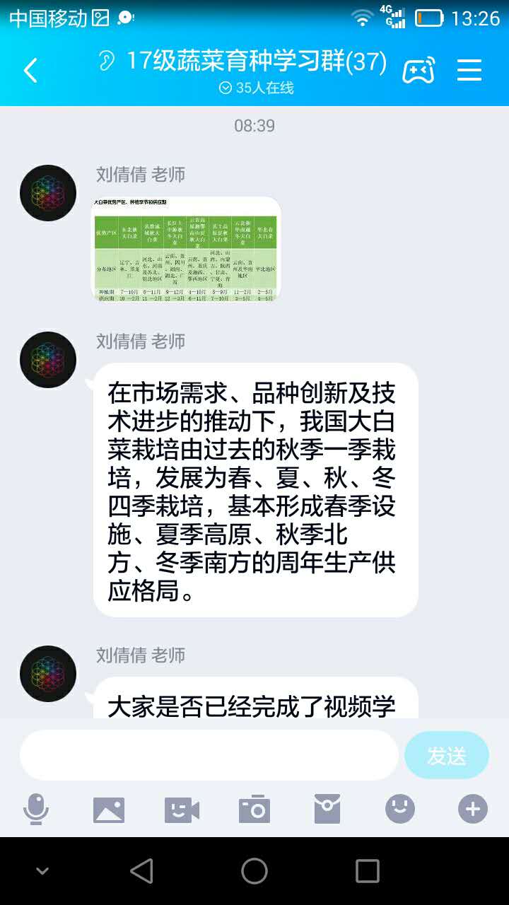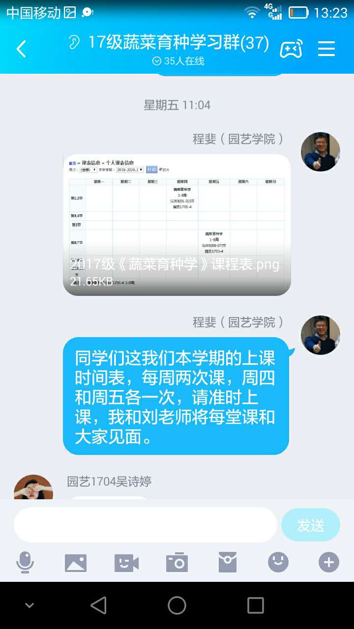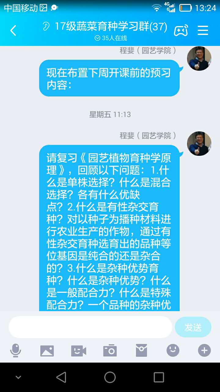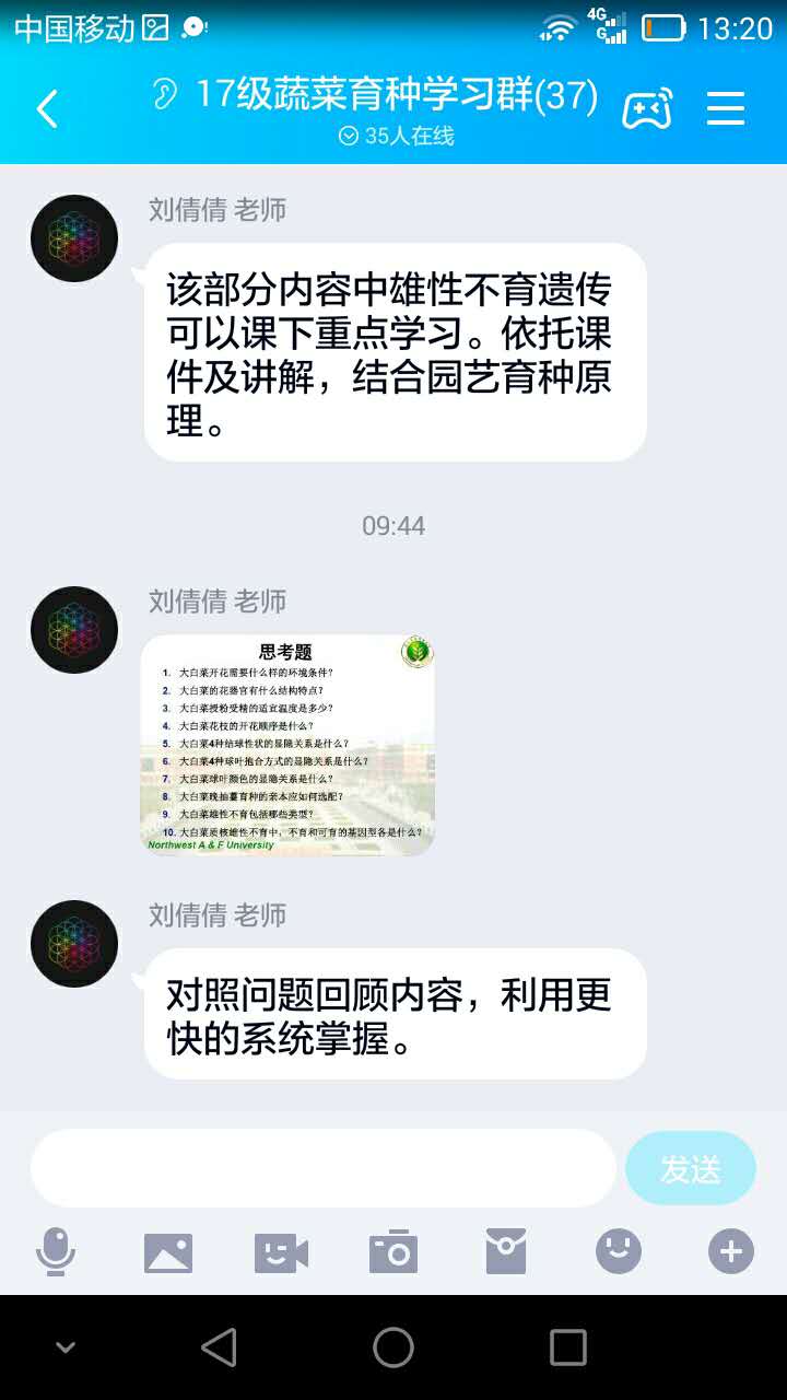 接到员工延迟返校,准备线上教学的通知后,我们两位教师立即搜索各种教学资源,筛选出西北农林科技大学《蔬菜育种学》的视频,再加上自己录制的部分教学视频作为基本教学依据,编制授课计划和教案,准备教学讲稿和其他比较丰富的教学材料,从教学纲要和内容上保证授课质量。提前两个周在学习通上将课程建设做好,同时建立和调试好QQ群。