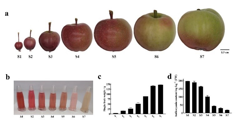 苹果 (Malus domestica Borkh.) 是世界上温带地区最重要的落叶果树之一,我国苹果的栽培面积和产量均居世界第一。同时,苹果色泽丰富,营养价值高,富含矿物质和维生素,耐贮藏,能够实现周年供应,是老百姓喜闻乐见的水果。果皮色泽是影响果实外在品质的重要因素,直接影响其商品价值。着色好的苹果更受消费者欢迎,果皮的鲜艳程度主要由花青苷的含量决定。在苹果中DNA甲基化参与成熟期果实色泽的形成机制已研究清晰,然而果实发育过程中果皮褪色机理及是否有DNA甲基化的参与还不清晰。