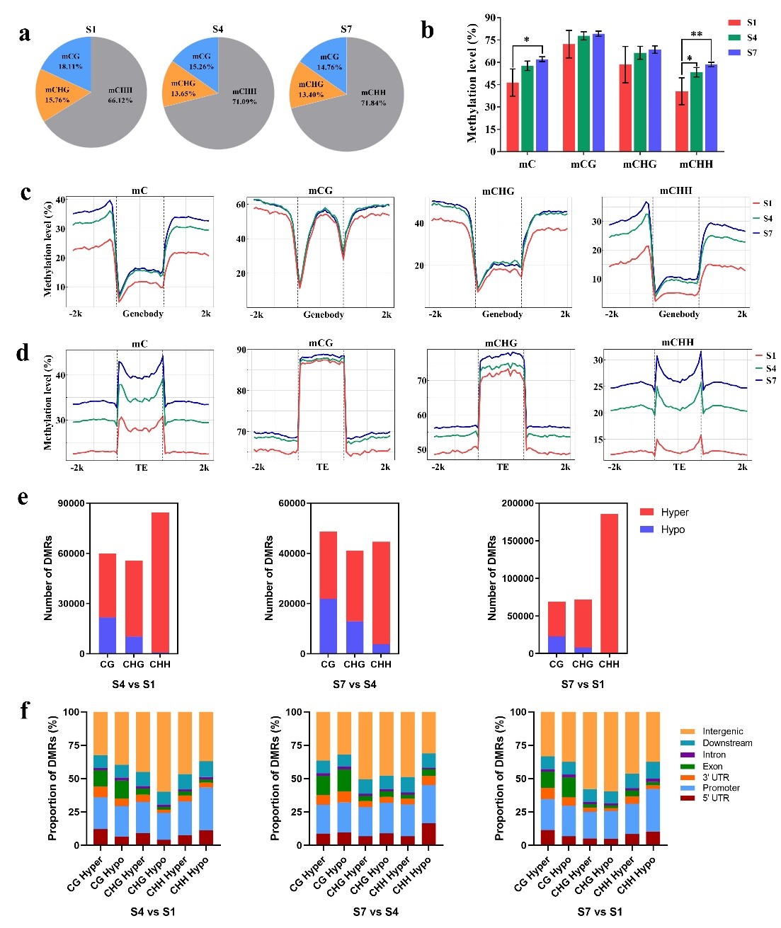 图 3‘黛红’果实不同发育期果皮DNA甲基化变化分析