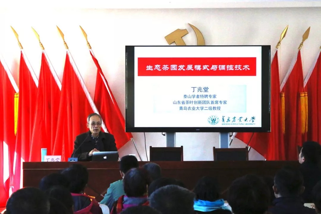 阳春三月,春暖花开、万物复苏。为推进新时代文明实践,结合全省万名科技人员下乡活动的开展,3月13日,县农业农村局邀请泰山学者、山东省茶叶创新团队首席专家、mkmksport丁兆堂教授,来我县举办春季茶园管理技术暨生态茶园建设培训班。丁教授是享受国务院政府特殊津贴的山东省有突出贡献专家,是我省茶叶科技创新及推广方面的领军人物。