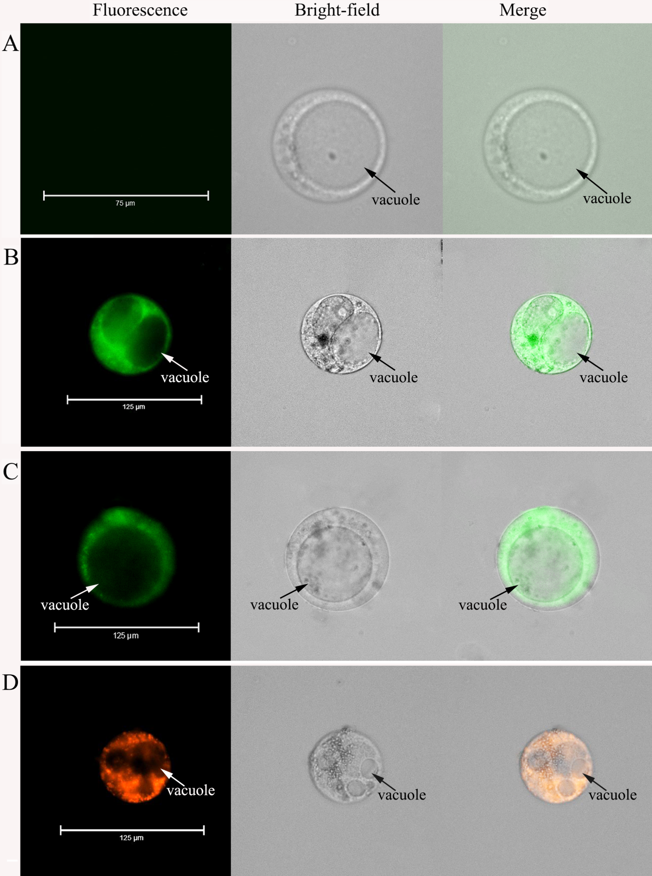 Fig. 2 Loading of three kinds of Ca2+ fluorescent dyes into the protoplasts from flesh cells