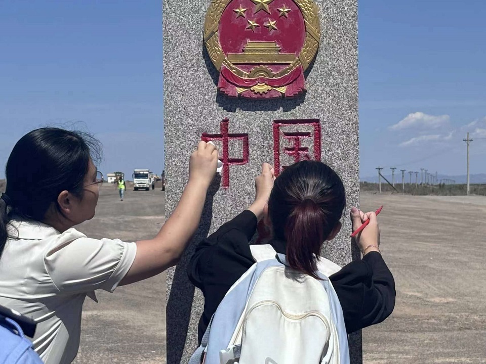“守得住风沙,耐得住寂寞。”位于中哈边境阿拉套山脚下的阿拉山口边防连,被称为“风口第一哨”,这里每年有160多天是8级以上的大风天气。战士们不仅要顶住风沙,更要忍受人迹罕至的孤寂。尽管气候条件恶劣,但战士们在山口国门之间,展现了与风同舞、与风作战的戍边风采。在边境线上,成员们站在国门之前,亲手擦拭国界碑,描红“中国”二字,动作轻柔而庄重,眼神中充满敬畏。每一次擦拭都仿佛在与历史对话,感受着国界碑所承载的厚重意义。国界碑是国家主权的象征,也是每一位边防卫士坚守的见证,戍边精神在此闪耀着光芒,那是无畏艰险的勇气、孤独坚守的坚韧和舍小家为大家的无私奉献,成员们深知,这一小小的举动是对国家尊严的维护和戍边精神的传承。