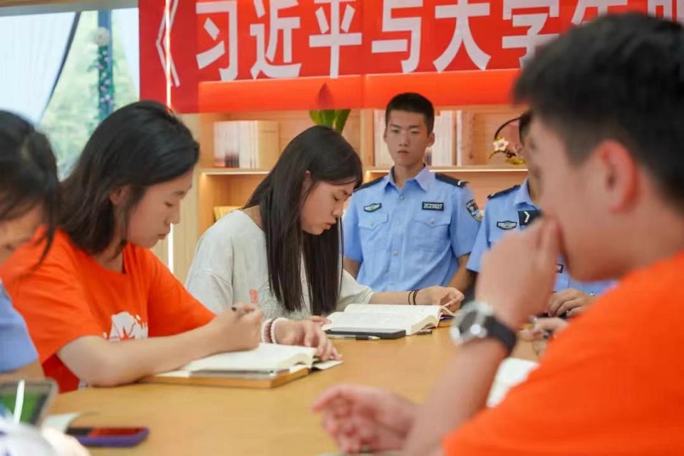 在阿拉山口出入境边防检查站的“曦林书屋”中,联合实践团的成员们精心组织了“为中国式现代化挺膺担当——青春年少好读书”《习近平与老员工朋友们》(第二卷)读书分享会。来自各高校的员工代表依次根据自身的实际情况,深入而真挚地分享了个人阅读后的所思所感。