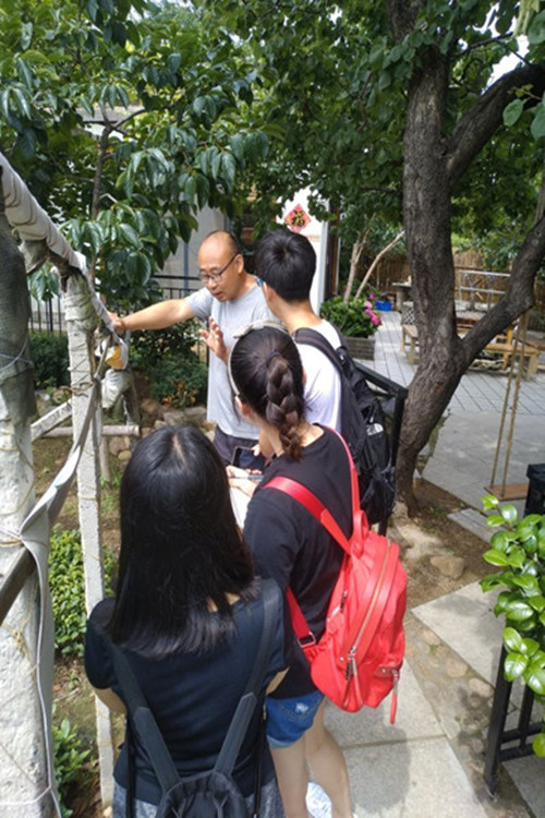 进入茶山园艺场后,成片的茶园在队员眼前缓缓展开,队员们不禁被眼前良好的生态环境所震惊。据了解,位于山东省临沂市的茶山园艺场,本着“绿色发展”理念,积极响应十九大号召,因地制宜,选取适合的果茶品种种植,天然生态沃土与科学的种植技术相结合建立了高产优质茶园。同时,园区大力开发特色旅游资源,突出发展观光农业和生态旅游,不断加快旅游区的发展步伐。先后获得“省级生态示范保护区”、“全国生态示范建设区”、国家AA级旅游区等称号。