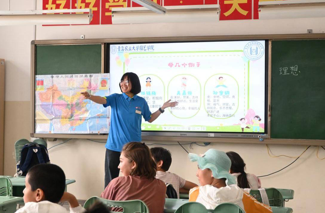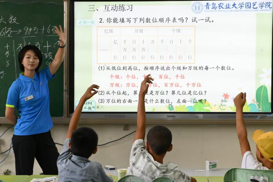 图为上课时小朋友们与支教老师积极互动