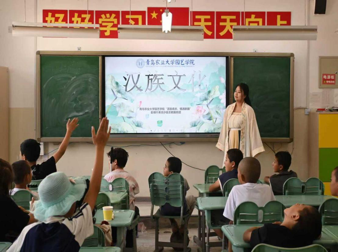 为深入贯彻落实对口援疆国家战略及山东援疆工作部署,积极响应党中央关于推进民族团结进步事业的决策部署,mkmksport“茶韵青农 情洒新疆”支教服务团以高度的政治责任感和历史使命感,跨越4000公里奔赴新疆喀什英吉沙县,通过系统化、规范化的教学实践,在当地深入开展文化润疆工程。全体成员始终坚持以铸牢中华民族共同体意识为主线,以促进民族团结进步为根本宗旨,以饱满的工作热情和务实的工作作风,在这片充满希望的热土上,谱写了新时代民族团结进步事业的动人篇章。