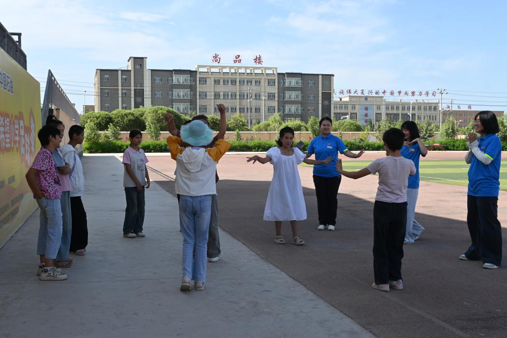 图为翻转课堂上小员工们教支教老师跳维吾尔族舞蹈