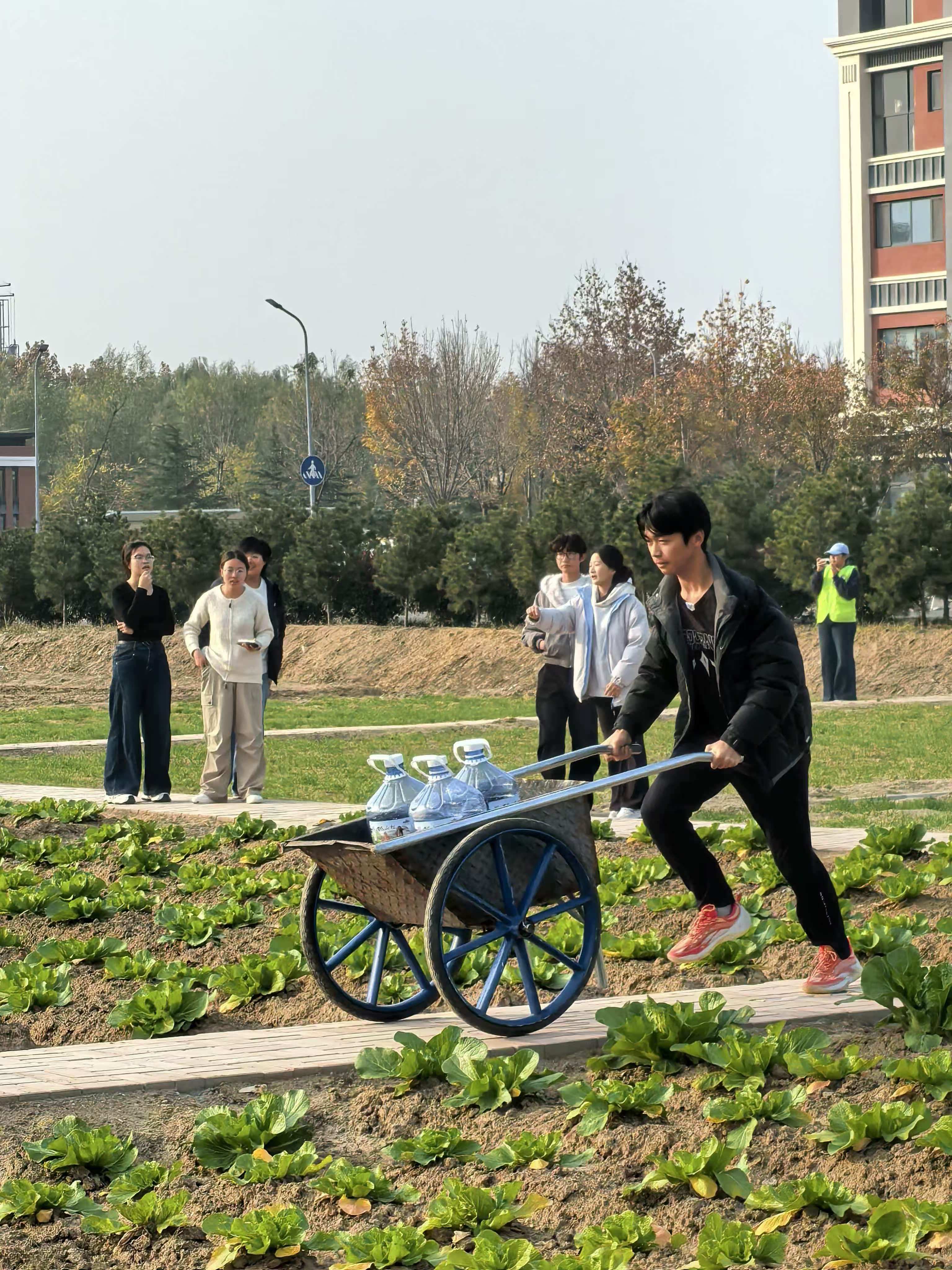 本次运动会公司参加了“扁担挑肥越障接力”、“同心抗旱保苗接力”、“小车运南瓜‘S’弯接力”以及“拔河比赛”四个项目,在充满乡土气息的赛场上化身为身手矫健的“农耕能手”,尽显园艺学子的活力与风采。活动现场加油声、欢笑声不绝于耳,丰收的喜悦与运动的激情交织成一幅动人的冬日画卷。