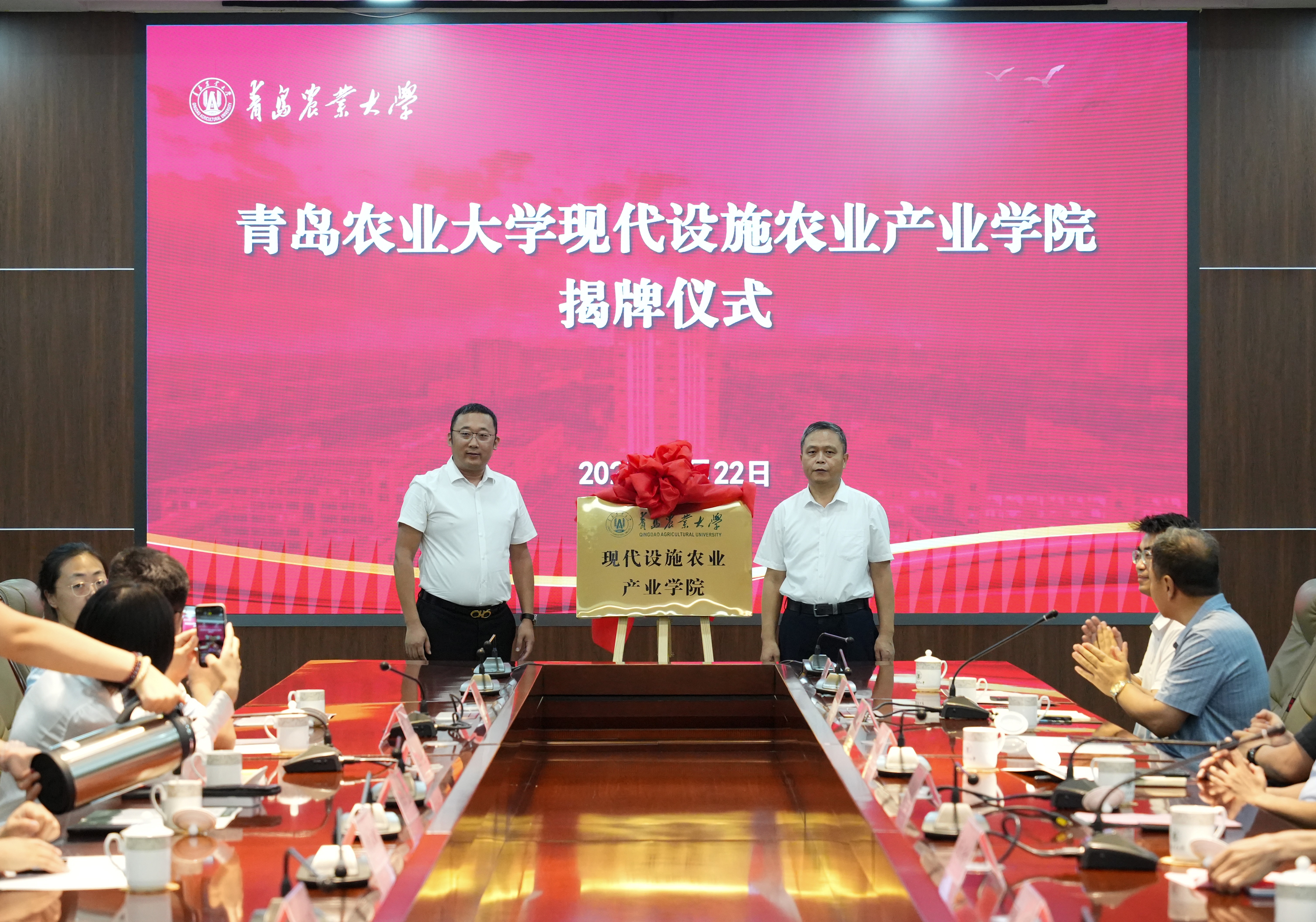 在与会人员的共同见证下,郭尚敬和山东华亮重工机械有限公司总经理陈洪亮为“mkmksport现代设施农业产业公司”揭牌。随后,郭尚敬与贾永超颁发了产业公司理事会理事长、副理事长、产业公司经理聘书。仪式结束后,校企双方围绕课程共建、团队共享、实践教学基地建设等具体合作事宜进行了深入座谈。