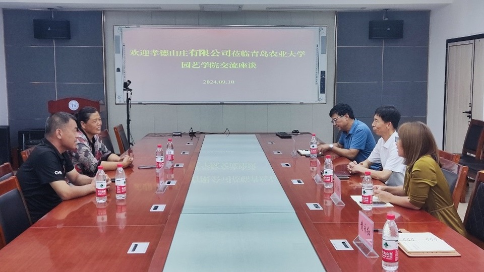 2024年9月10日,潍坊孝德山庄有限公司王珮杰总经理、郝连云场长来mk体育进行座谈交流。座谈交流会由公司党委书记隋成竹主持,园艺系系主任段艳欣教授;果树栽培团队马春晖教授、黄永红副教授参加了座谈。