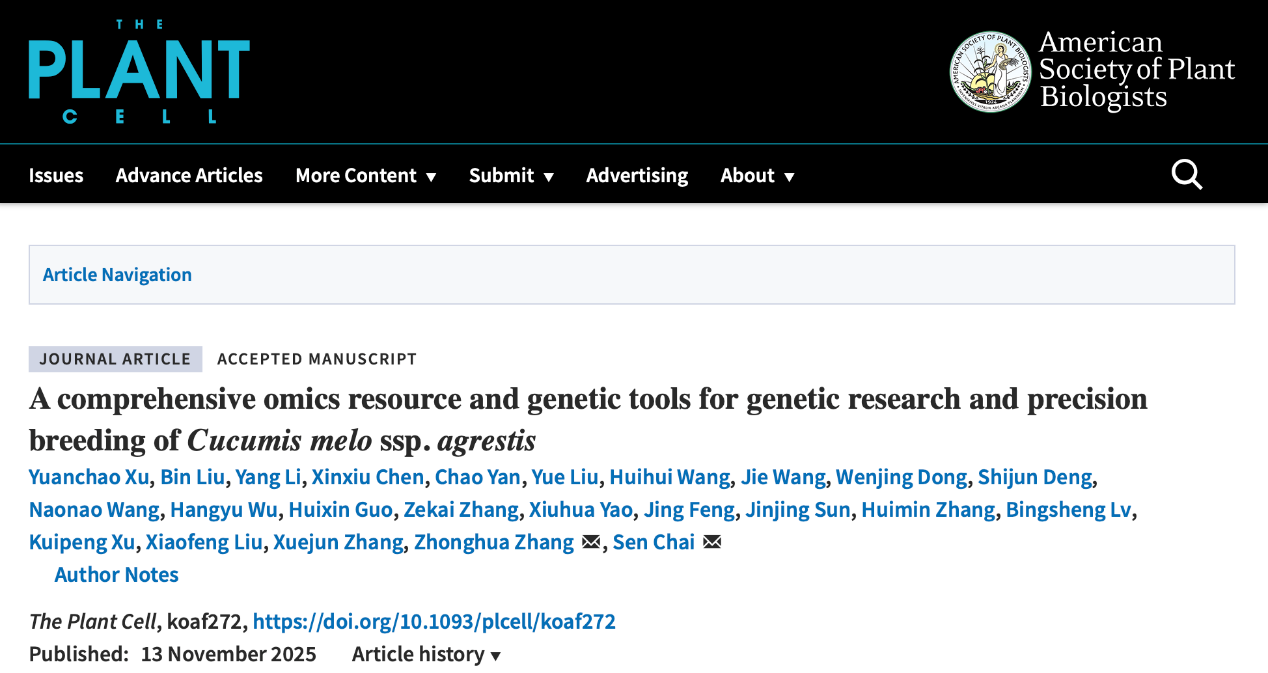 近日,mk体育瓜类生物学张忠华/柴森团队与合作团队在国际知名期刊The Plant Cell(自然指数期刊)在线发表了题为A comprehensive omics resource and genetic tools for genetic research and precision breeding of Cucumis melo ssp. agrestis的研究论文,该研究基于薄皮栽培种质13C, 构建了包含T2T基因组、全组织的转录组图谱、重测序近饱和EMS突变体库以及稳定遗传转化技术等工具的甜瓜综合功能基因研究体系,并挖掘多个农艺性状的关键功能基因,为甜瓜功能基因研究与分子育种提供了理论和技术支持。