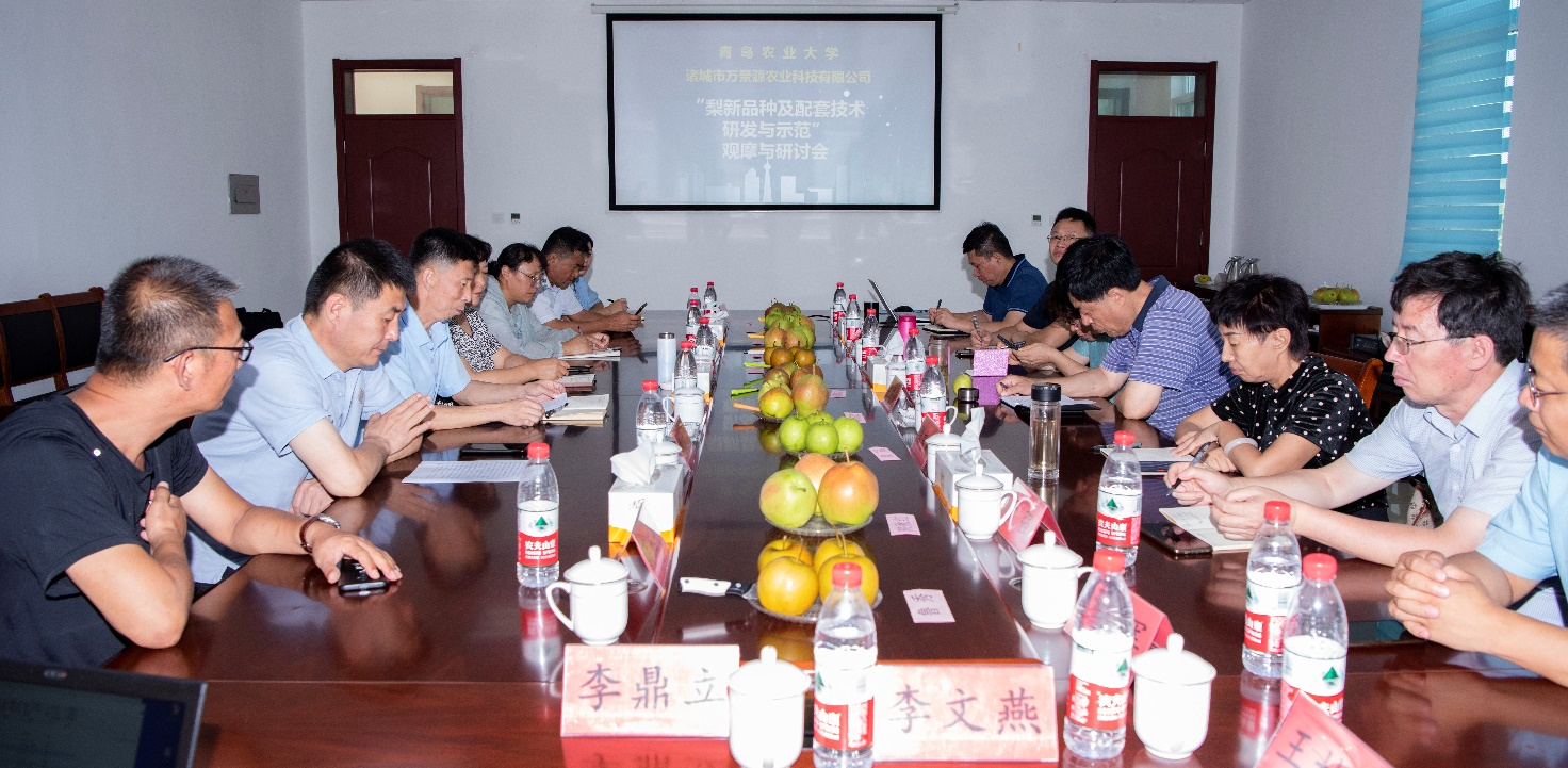 8月23日,由mk体育梨遗传改良与种质创新团队承办的“梨新品种及适宜砧穗组合筛选与评价”观摩与研讨会在诸城举行。本次会议由国家现代农业梨产业技术体系和山东省农业良种工程项目支持。省农技推广中心王志刚研究员、潍坊公司曹慧教授、诸城万景源农业科技有限公司总经理侯志刚及相关地市农技专家参加,mk体育隋成竹书记、王然教授、李鼎立教授出席活动。