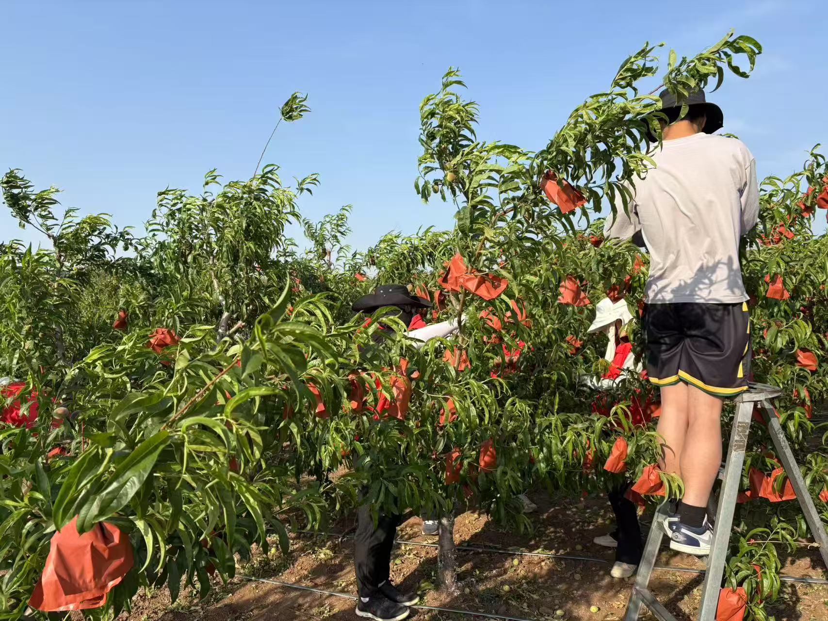 之后,同学们扎根田间地头,以桃为友、与农为伴,将课堂理论融入生产实践,在疏果套袋、田间管理中体悟现代农业的智慧与匠心。