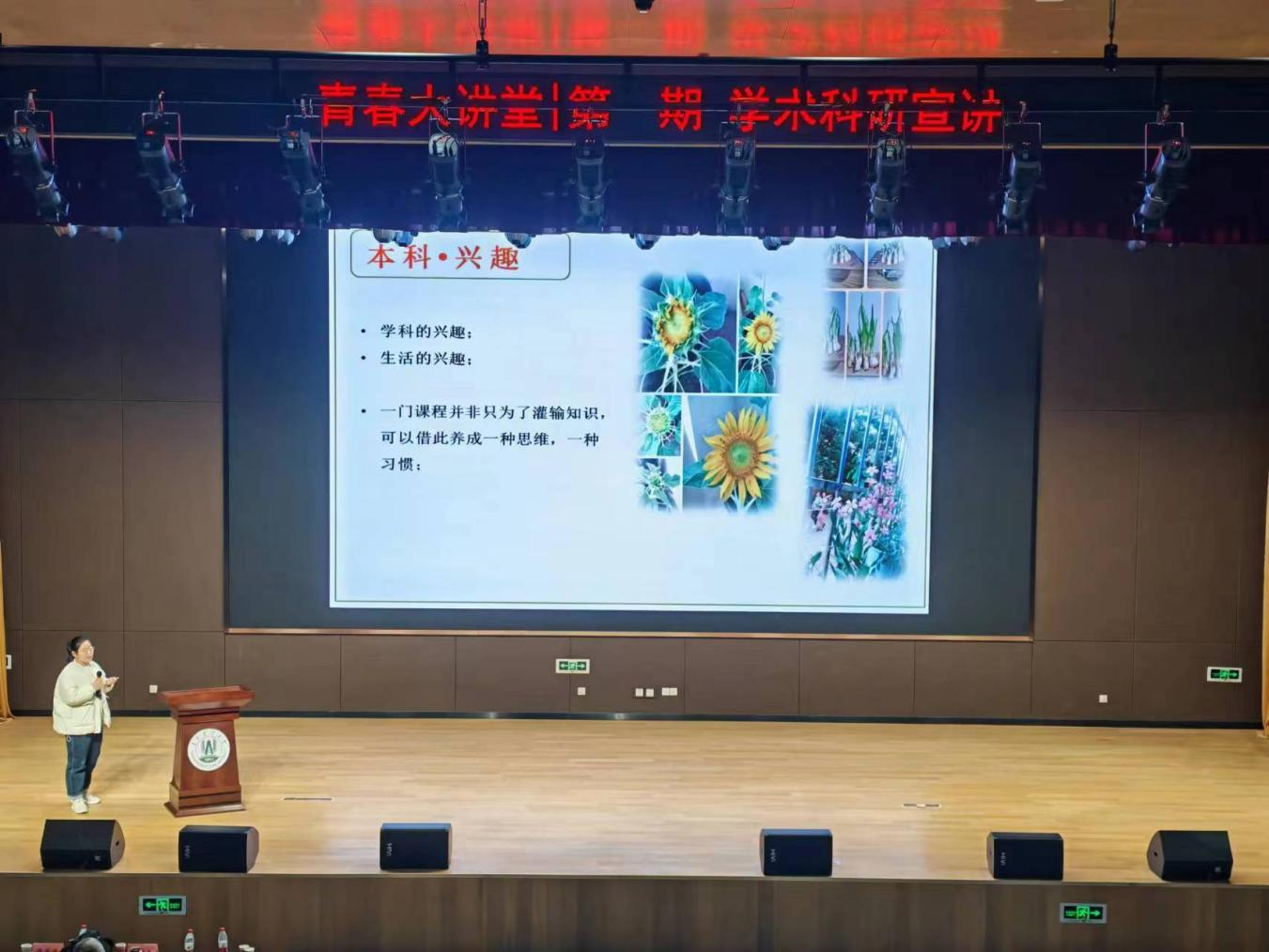 戴洪义以“一粒苹果种子的故事”为主题,图文并茂地为同学们展开第一讲。结合个人从留学到科研的经历,他介绍了从事苹果育种30余年的研究思路和丰富成果,包括在基因编辑、新品种选育、高效育种技术体系建设与推广等方面的成就与目标。一幅幅摄于不同国家的图片特色鲜明,从“一粒种子”到秋收满园,从学习国外技术经验到立足国内产业需求,见微知著、深入浅出地得出“读万卷书和行万里路两者缺一不可”这一结论与中心思想,他鼓励同学们抱守初心、夯实基础,祝福大家得觅良师、行有益友。最后,戴洪义逐一回答了同学们的提问,从专业到品质给予同学们许多建议,使得同学们对于“做学问先做人”有更加深刻的理解,牢固了专业思想,强化了成人成才的坚定信念。