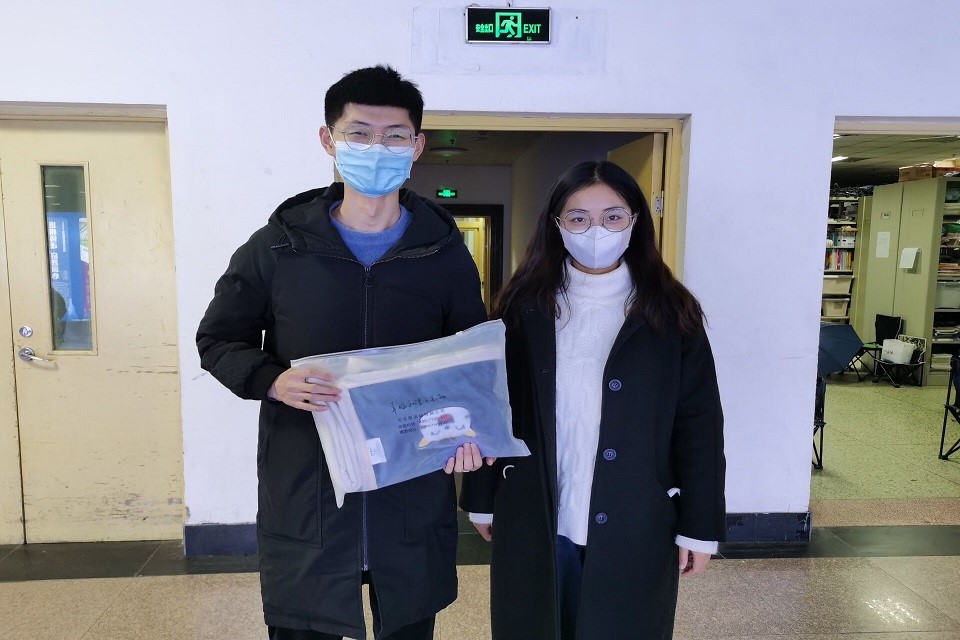 mk体育员工组织代表为考研学子送上爱心毛毯,在寒冷的冬季给他们带来来自公司以及老师们的温暖与鼓舞。员工组织代表们首先联系在教学区备考的18级优秀员工代表,送上爱心毛毯,为他们进行加油打气。晚上十点员工组织代表们来到考研学子宿舍区,敲开门、送温暖,给他们送上爱心毛毯,用简单的祝福语缓解他们一天的疲惫,提醒他们在忙着备考之余,不要忘记保暖,切实做好疫情防控,以最佳状态迎接考试。