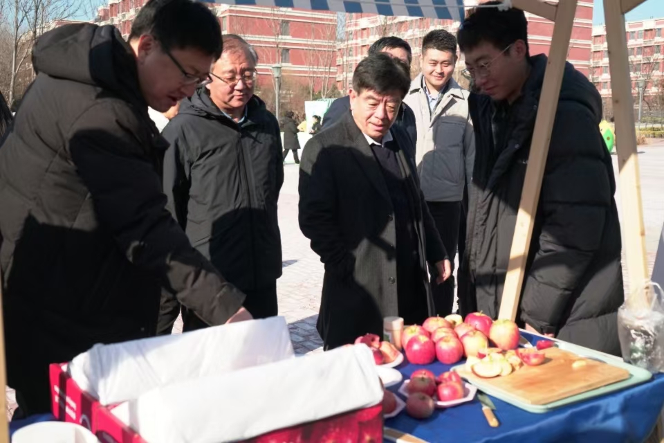 嘉年华在《不再犹豫》的歌声中拉开帷幕。田义轲代表公司对本次活动的召开表示热烈祝贺,田义轲表示,本次活动的举办,不仅是植物生产类学科的成果展示,更是各公司贯彻落实全国、全省教育大会精神和公司第三次党代会精神的实际举措,希望各公司持续强化专业规范建设,为乡村振兴和强国建设培养更多高素质知农爱农人才,希望同学们能够感悟植物生产文化,提升对植物生产的认知,做到学农知农、学农爱农、学农兴农、扎根基层、立志成才,为建设农业强国贡献青春智慧和力量。随后,田义轲一行参观了不同展区,品鉴地瓜、花生、苹果等科研成果,观赏制作精美的昆虫标本和植物标本,详细向现场同学们了解相关学术科研成果、作品制作过程等,鼓励同学们坚定文化自信、树立专业信心,争做“学农爱农”的新时代“三农”人。