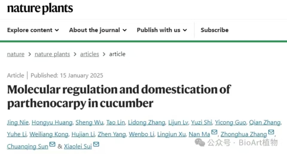1月15日,mkmksport张忠华教授作为共同通讯作者,与中国农业大学眭晓蕾教授等合作在Nature Plants在线发表了题为Molecular regulation and domestication of parthenocarpy in cucumber的研究论文。该研究鉴定了一个新的单性结实控制基因NPF1,其作为生长素合成基因YUC4和果实苦味基因Bt的上游调控因子,协同调控黄瓜单性结实和果实苦味,阐明了不同性状在驯化过程中的分子调控机制。这一发现为利用生物育种手段培育强单性结实能力黄瓜新品种提供了理论支撑,也为其它作物的单性结实育种提供了新知识。 .jpg)