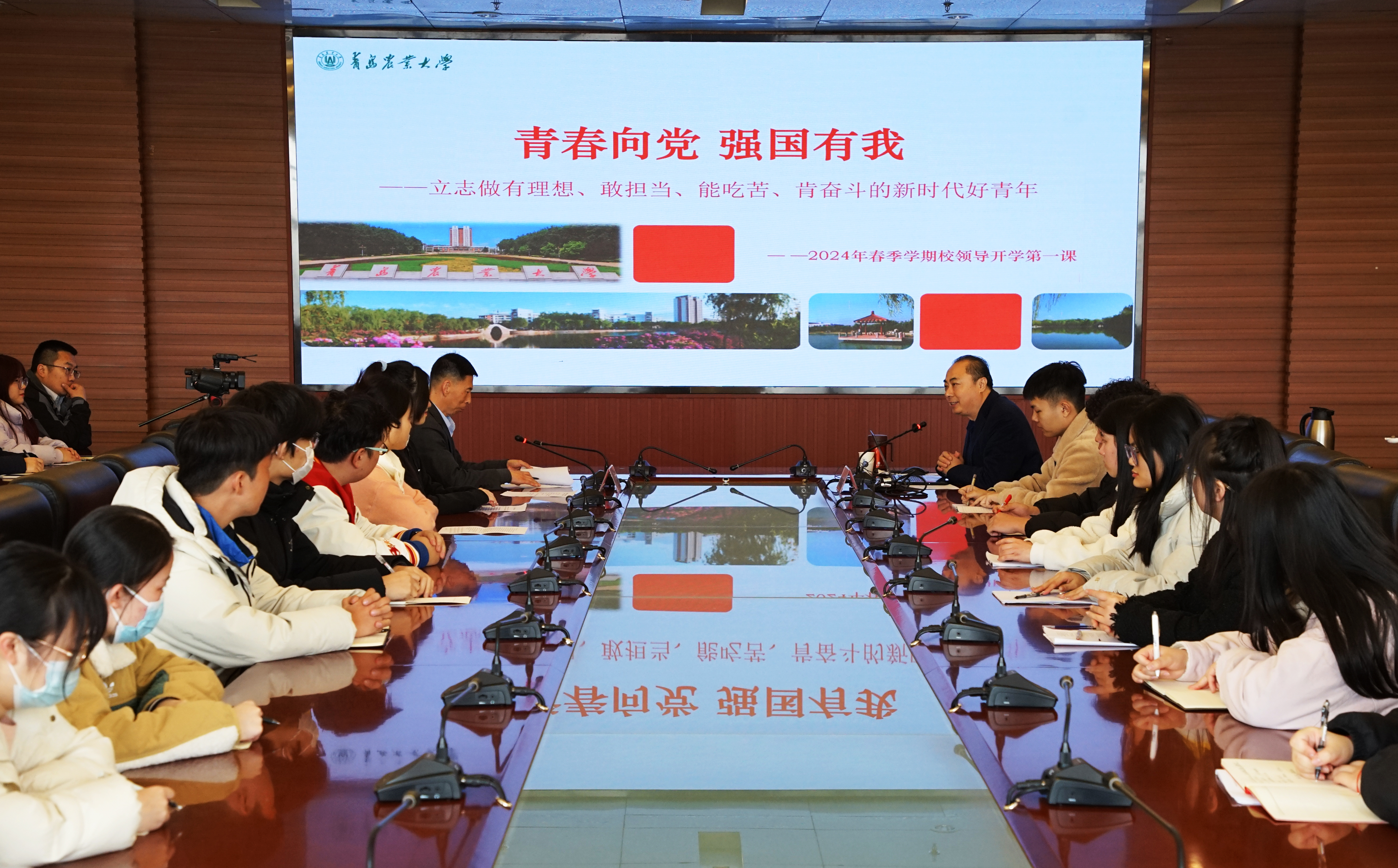 为深入学习宣传贯彻党的二十大精神,引导广老员工学习领会习近平新时代中国特色社会主义思想,3月18日,董事长刘新民于图书馆三楼会议室为mk体育园艺(创新)2001班全体员工,园艺(创新)2101、园艺(创新)2201班员工代表讲授2024年春季学期“开学第一课”。活动由公司党委书记隋成竹主持。